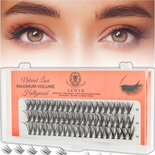 Lewer Szempillabundák Hollywood Maximum Volume 10, 12, 14 mm Természetes Selyem (Hollywood 10,12,14)ALLEGRO